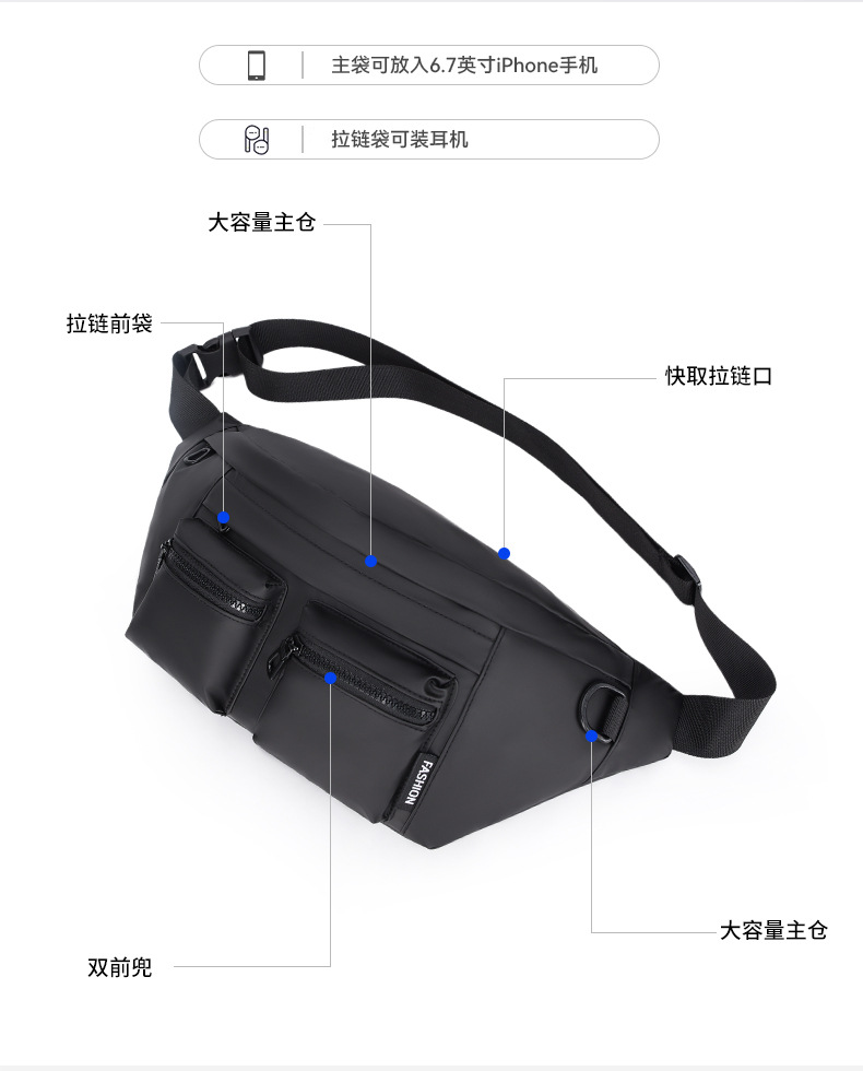 cross-border new arrival multi-pocket waist bag sports cross body cycling bag japanese ins korean style trendy cool chest bag large capacity shoulder bag