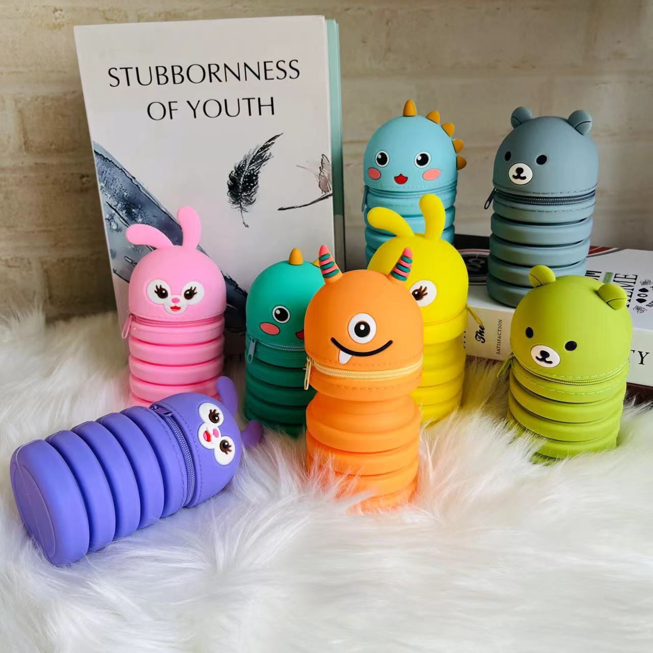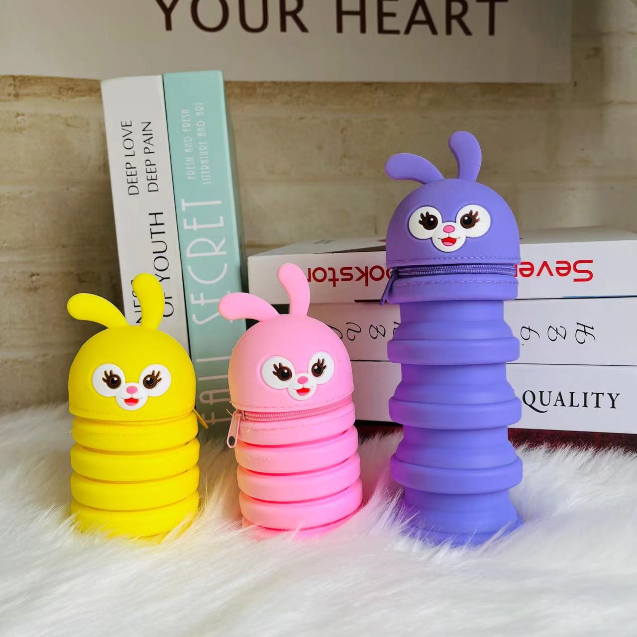 new silicone folding pencil case cute cartoon student large capacity pencil case creative retractable pen container cylinder wholesale