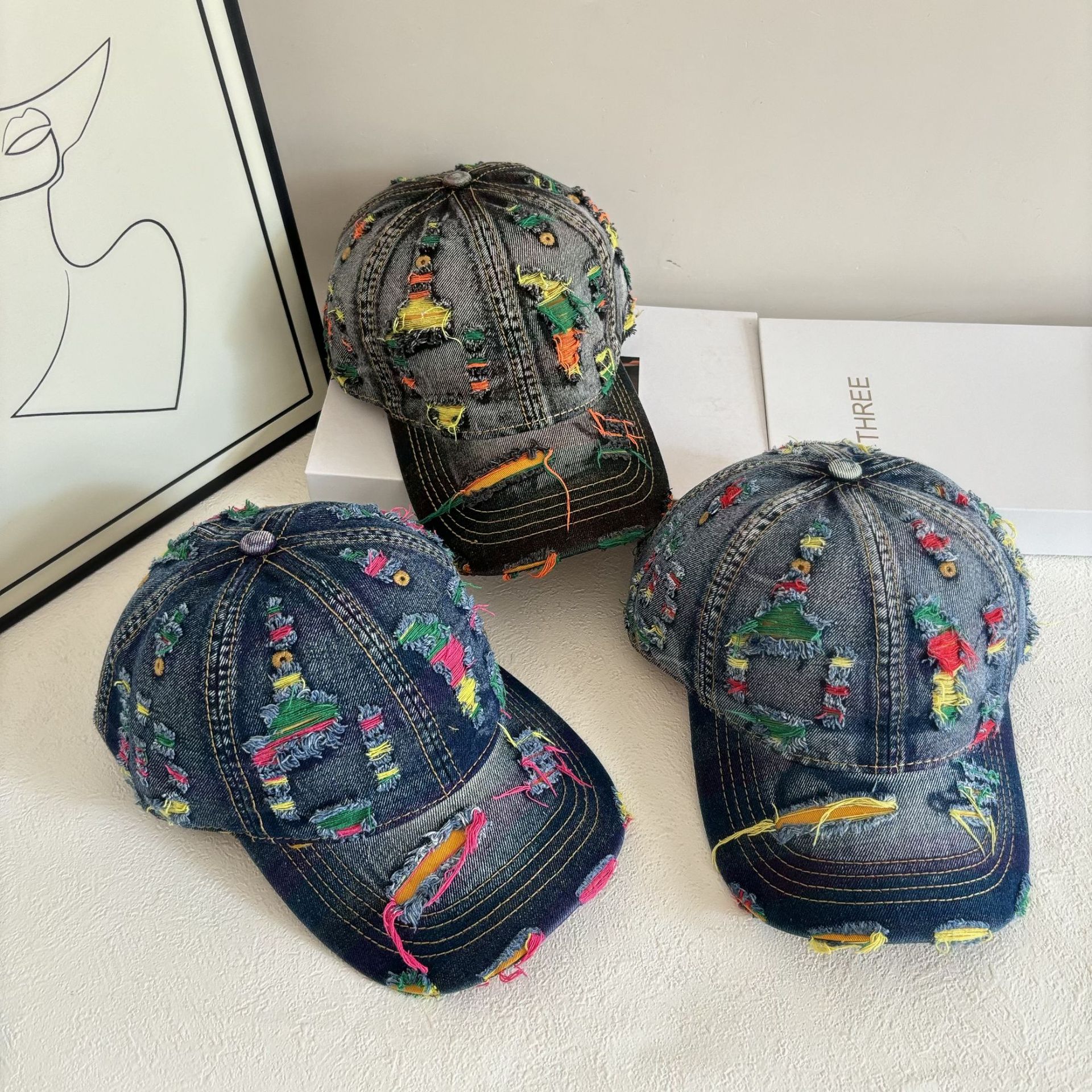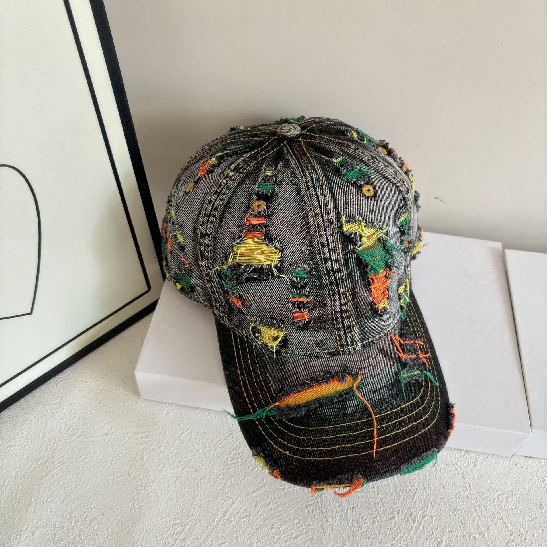 washed soft top denim with hole personality retro cross-border big brim baseball cap men outdoor all-matching breathable peaked cap