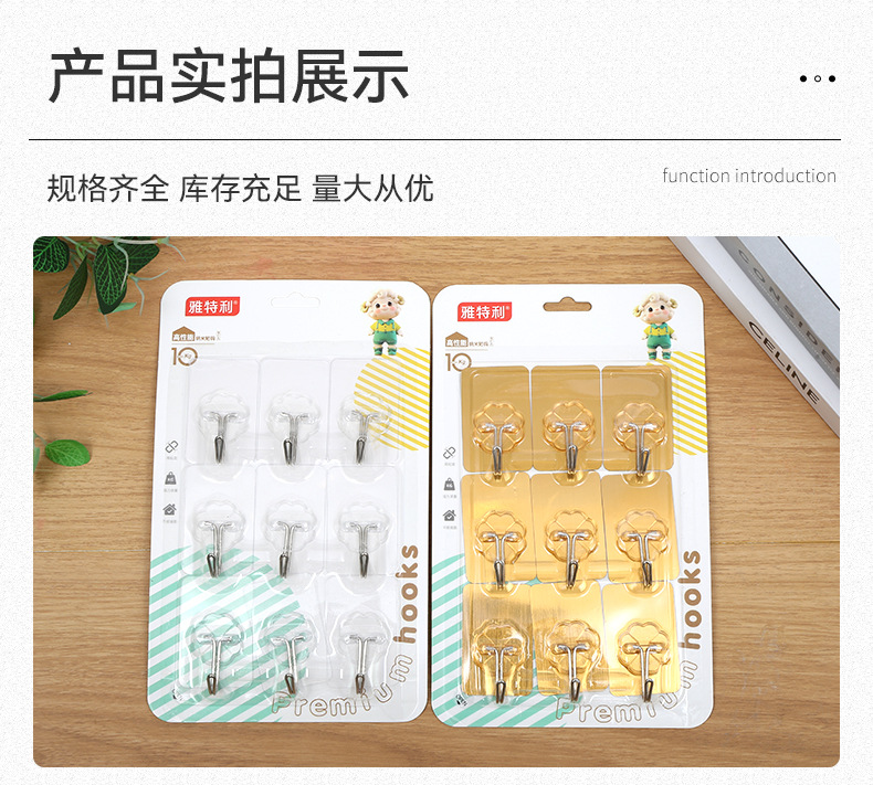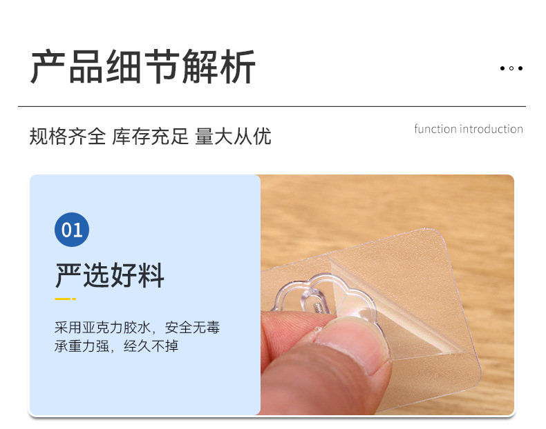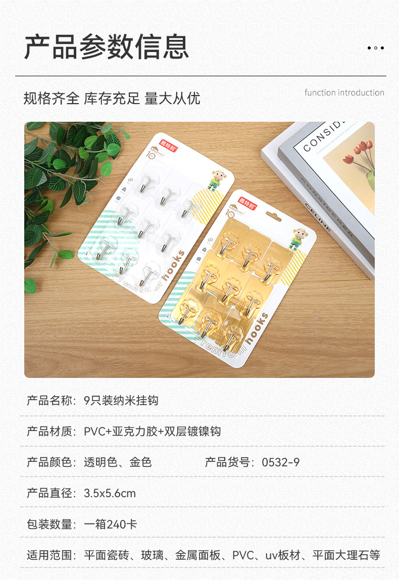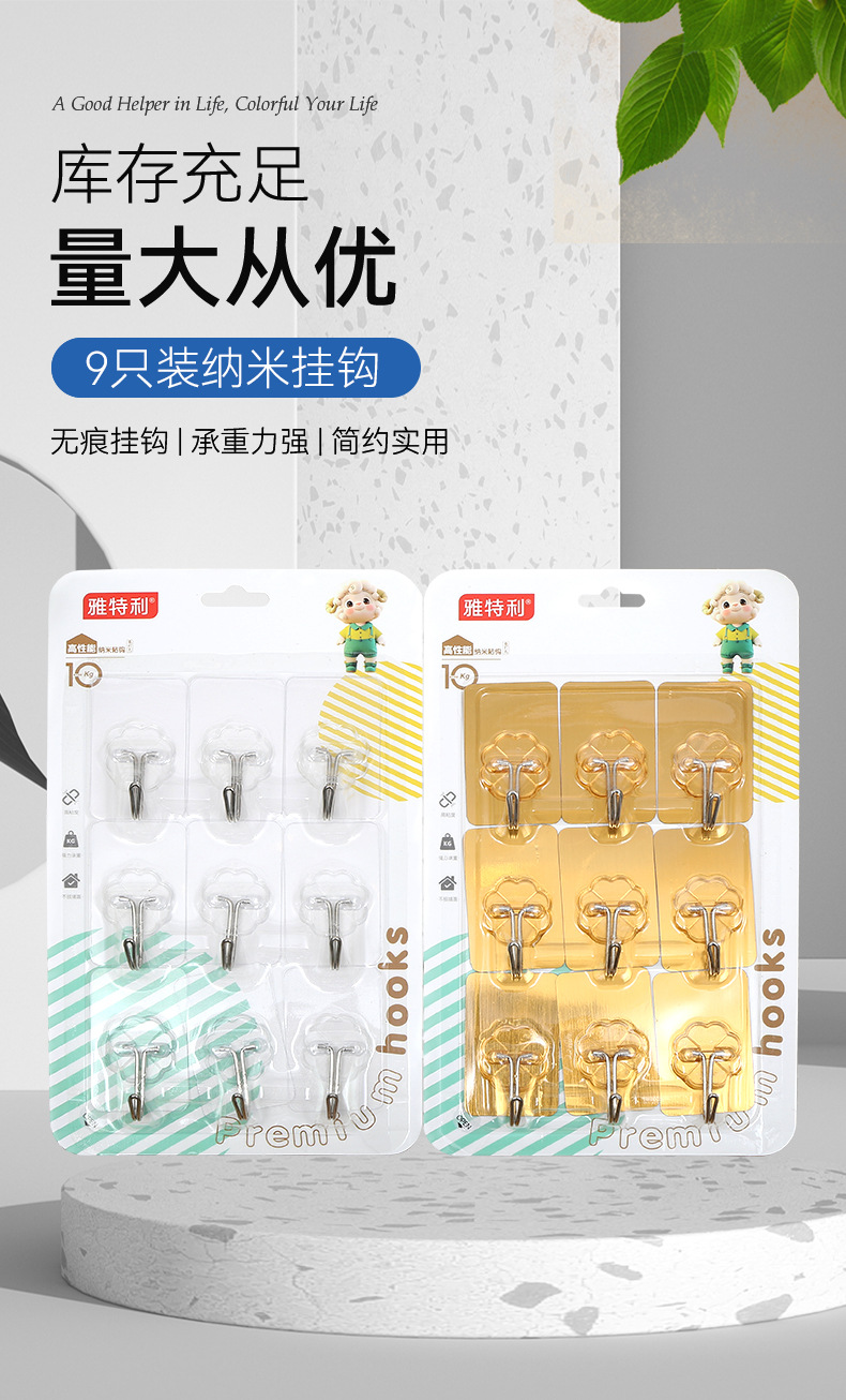 9 pcs nano hook wholesale punch-free non-marking strong sticky hook kitchen bathroom door back transparent hook