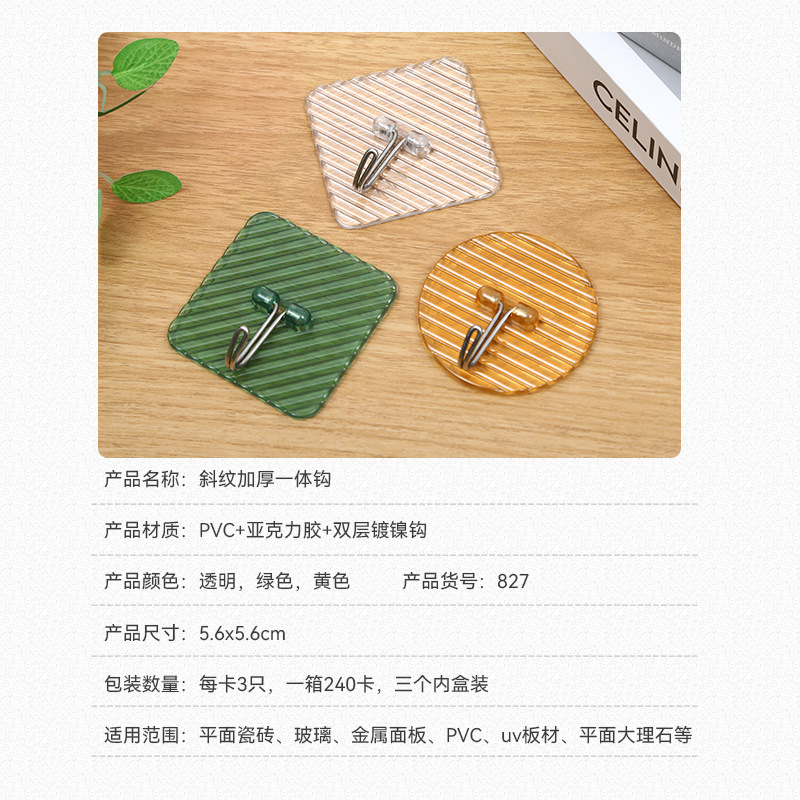 twill thickened integral hook nano seamless sticky hook clothes hook simple bathroom storage punch-free supermarket household