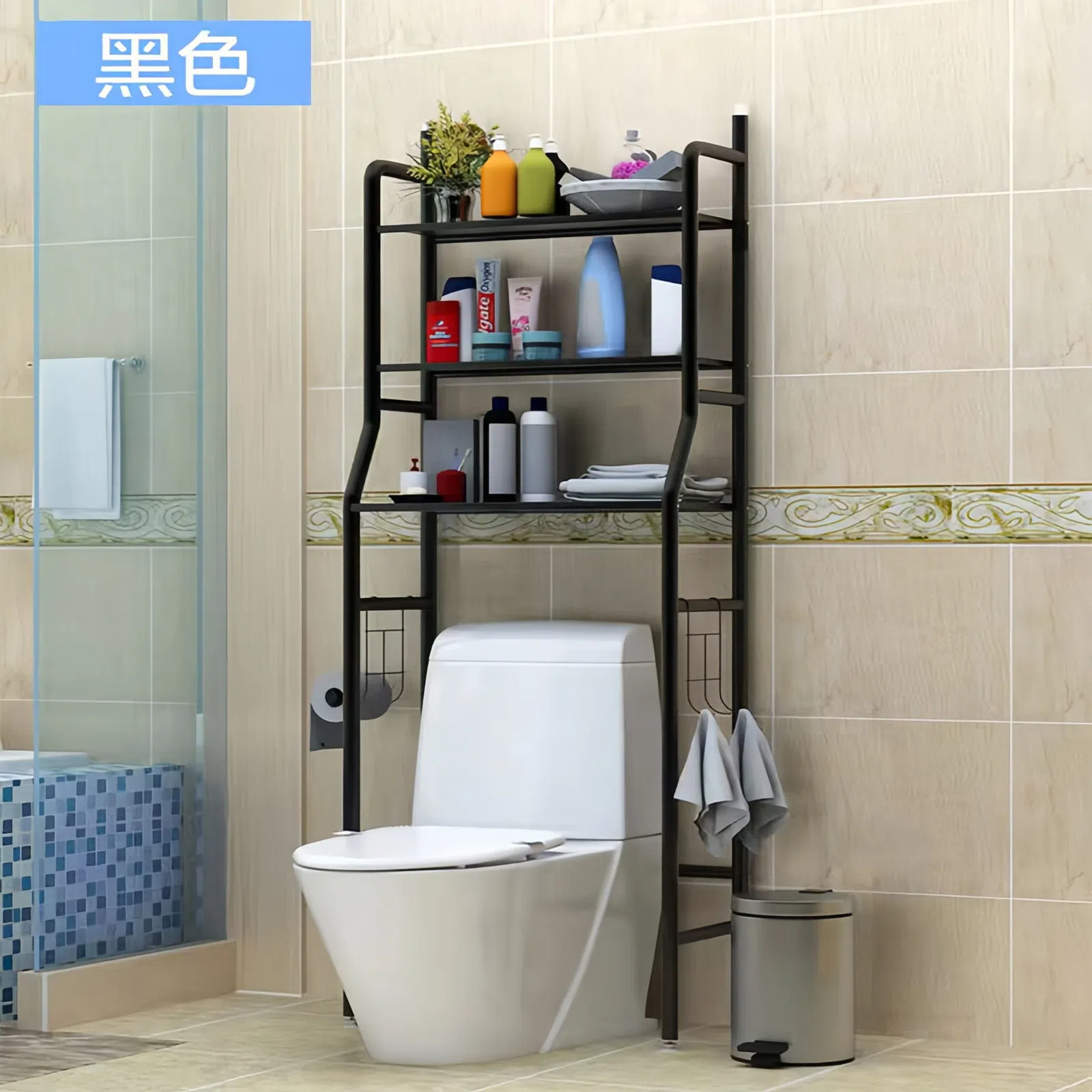 three-layer black toilet rack