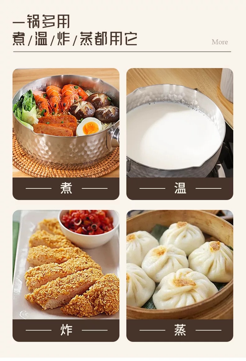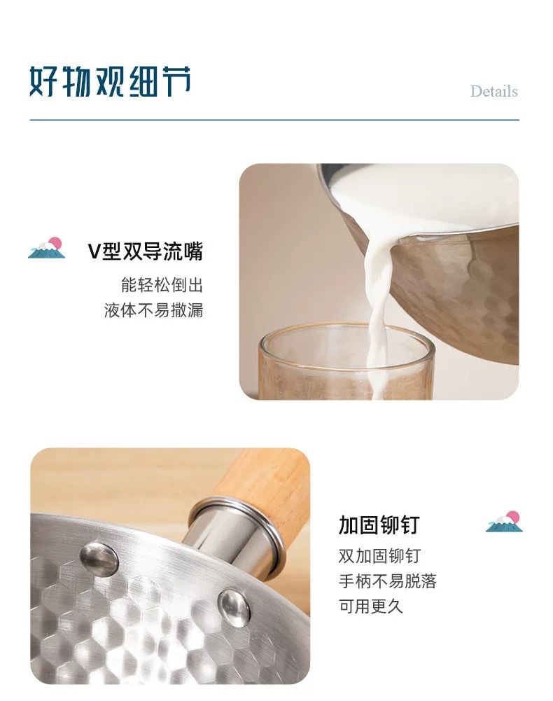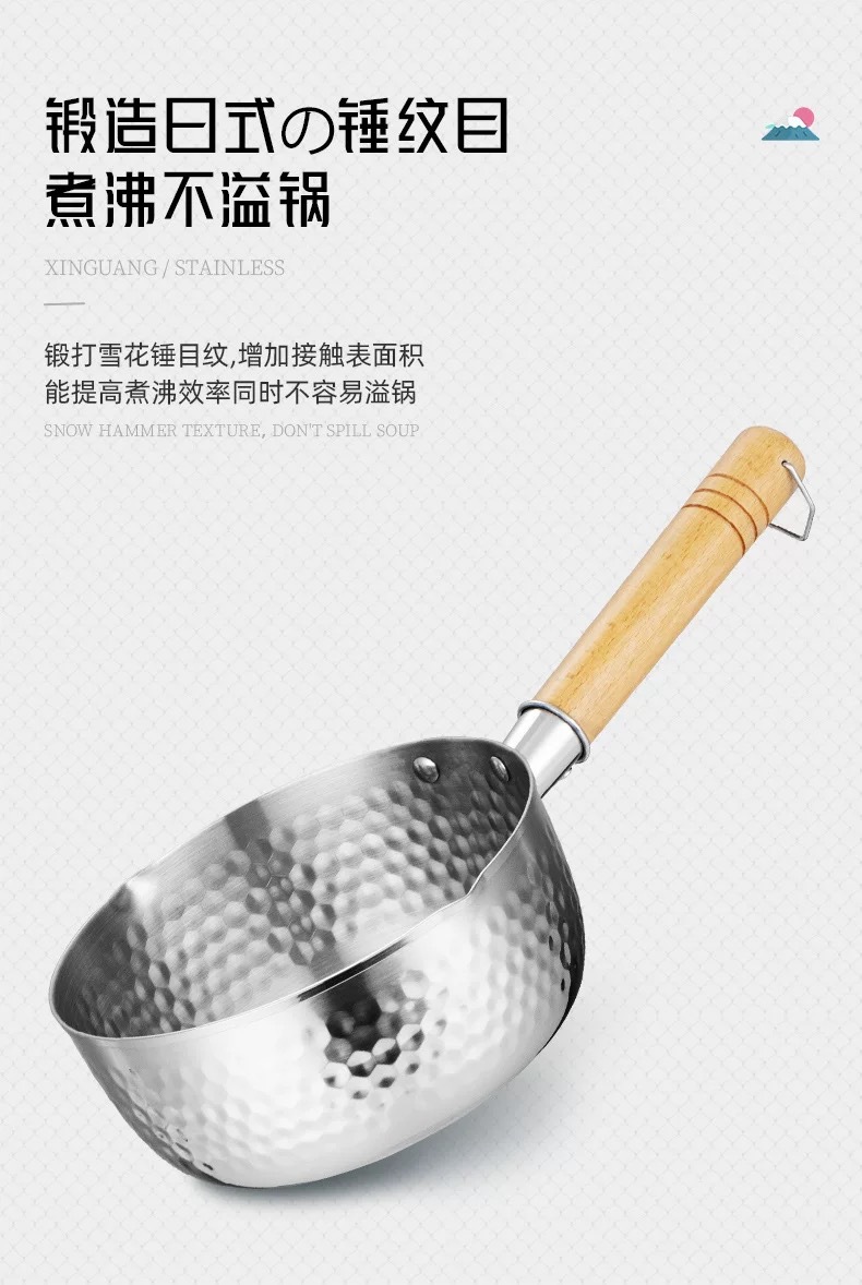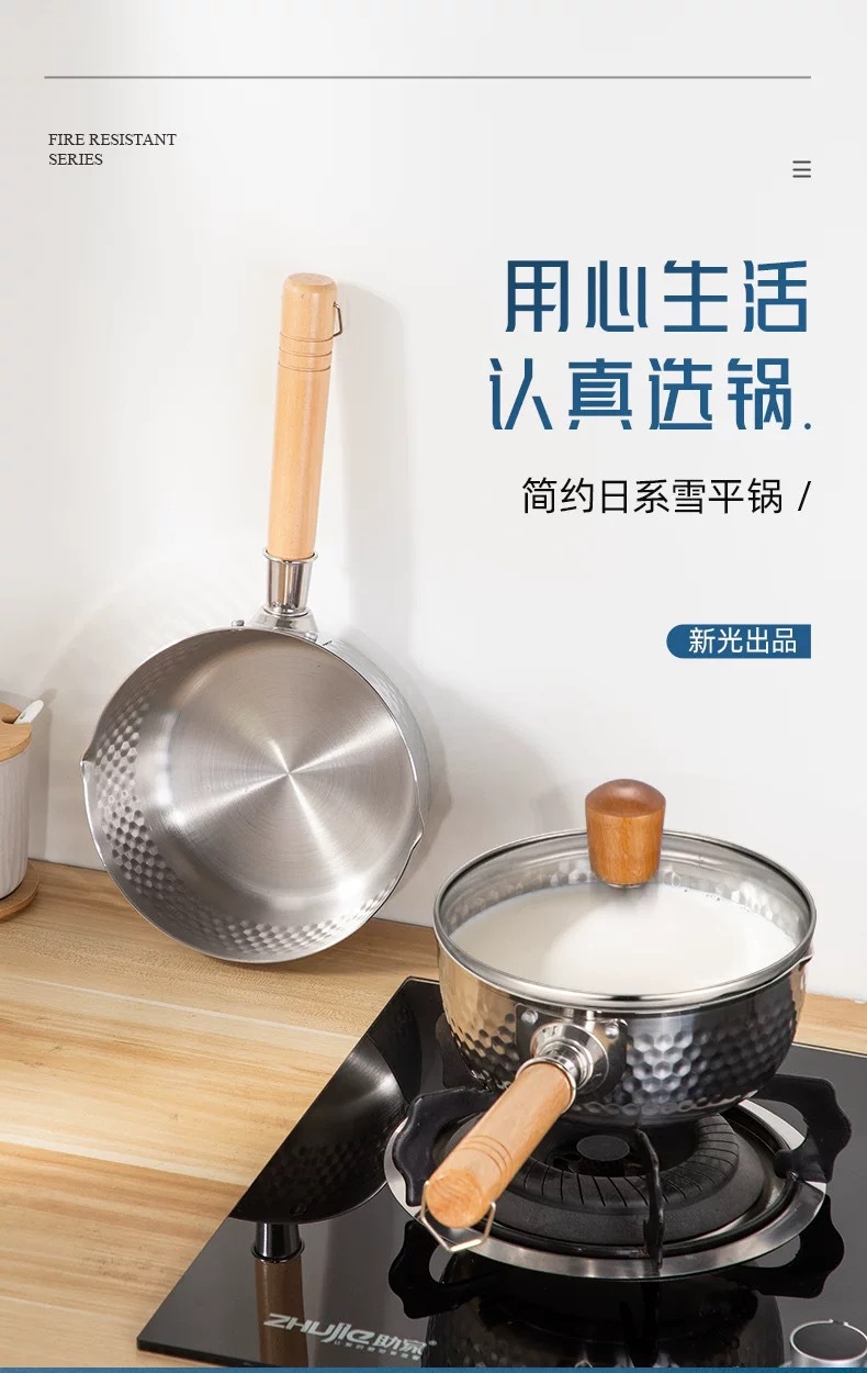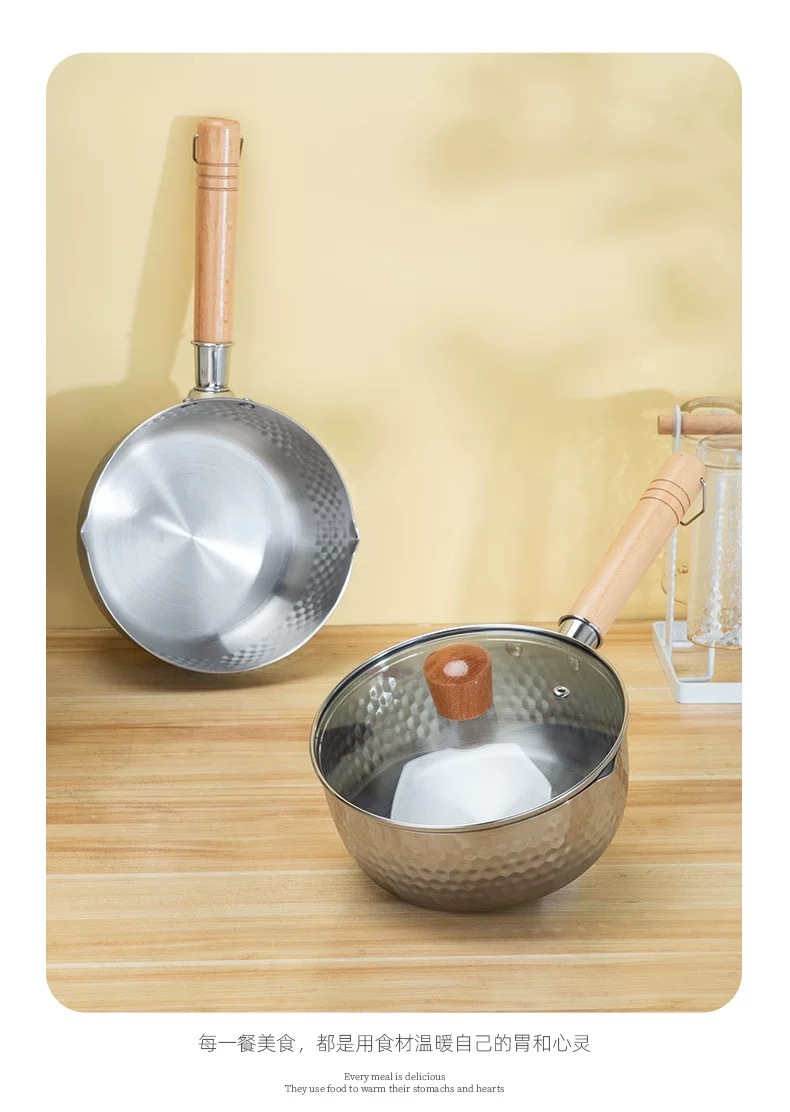 japanese style yukihira pan hammered wooden handle 430 stainless steel milk pot thick flat bottom soup pot for induction cooker complementary food pot cooking noodles