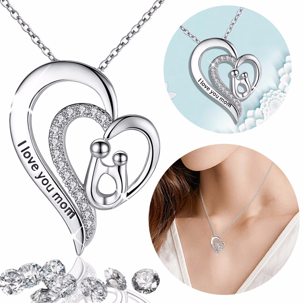 mother and daughter crescent necklace