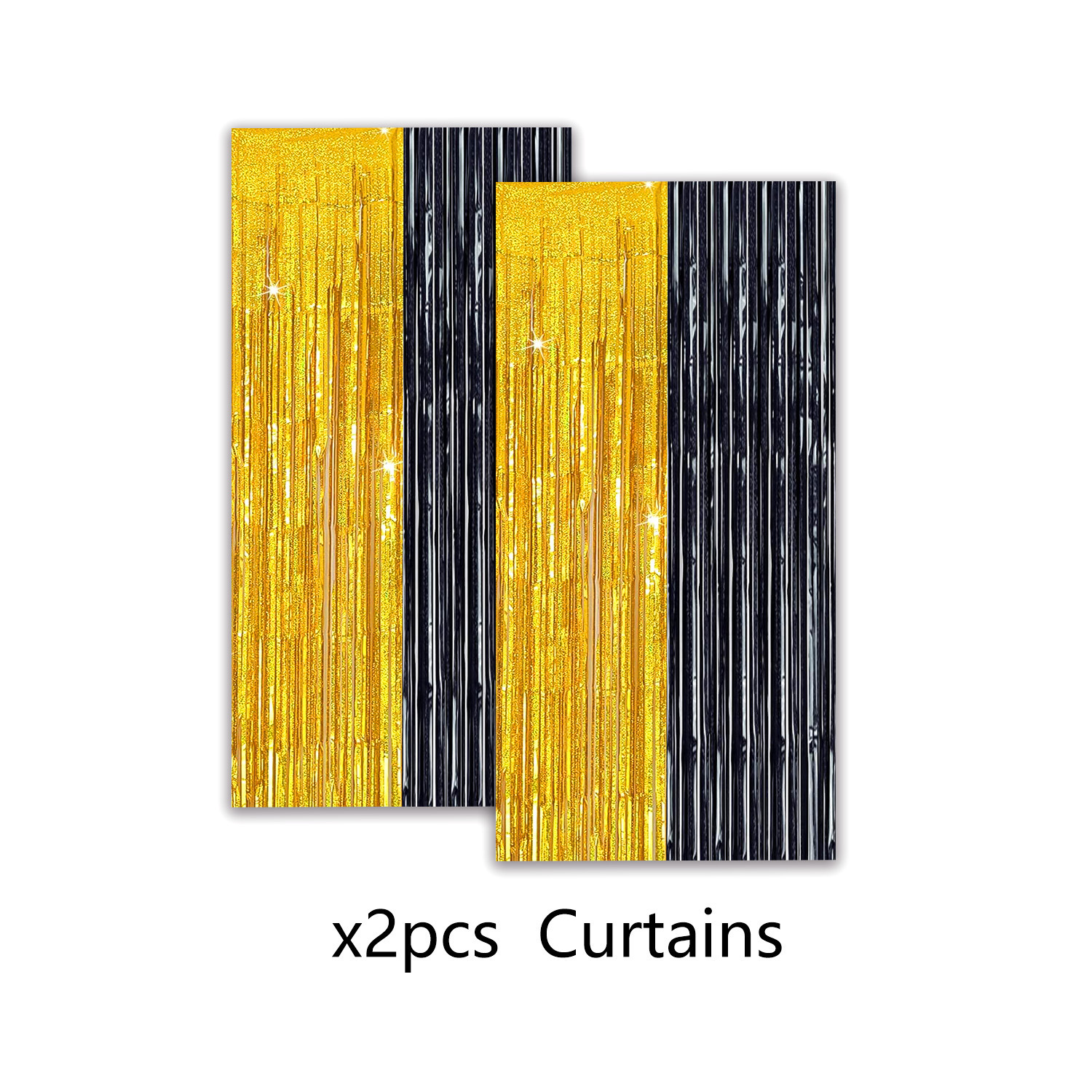tinsel curtain 2pcs-black gold retirement