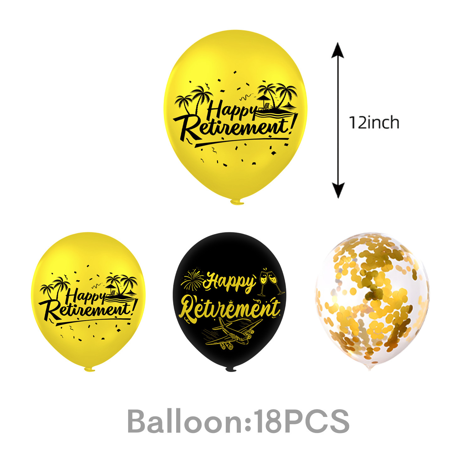 balloon 18pcs-black gold retirement