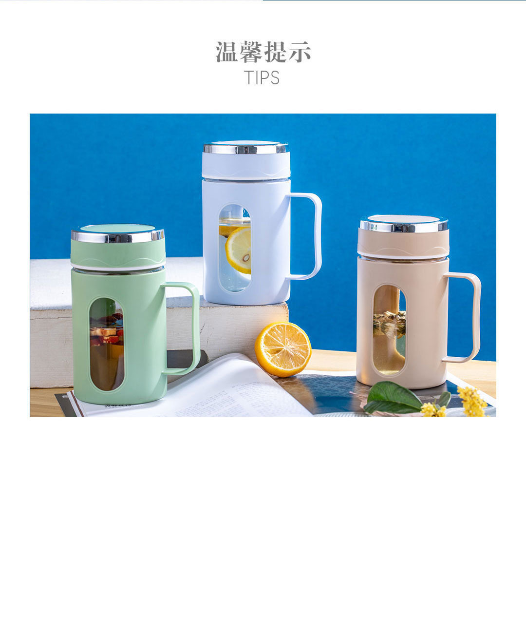 注:不含漏网,禁止使用60°以上热水,防止破裂烫伤。如需使用温水,先温杯预热后倒入温水,瞬间耐冷热温差≤60°