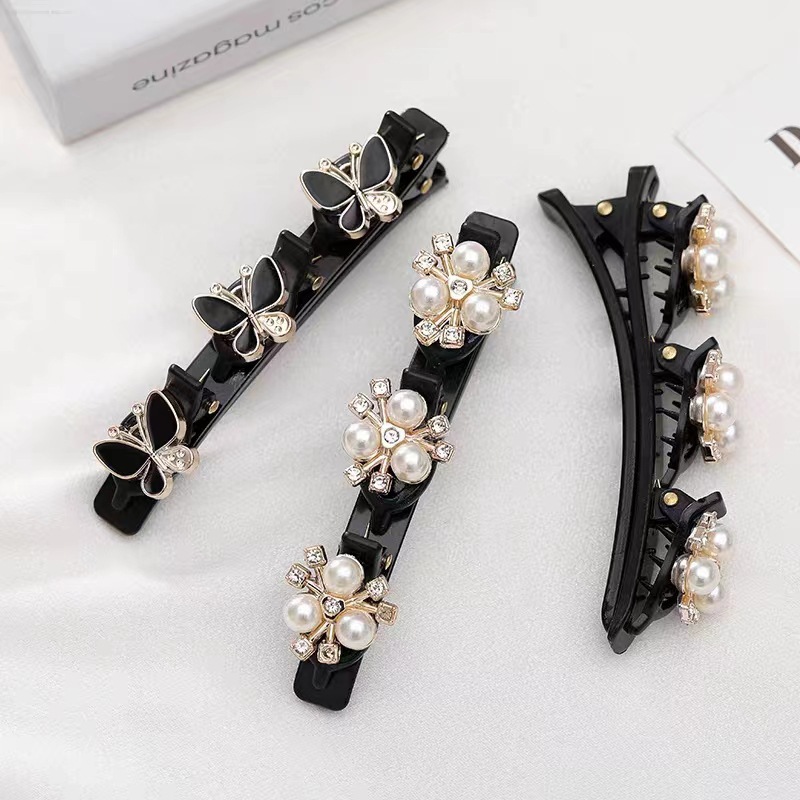 pearl rhinestone lacet barrettes