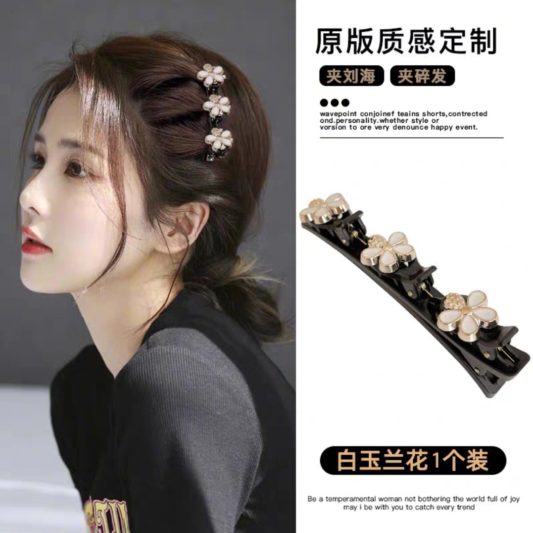 black magnolia woven barrettes