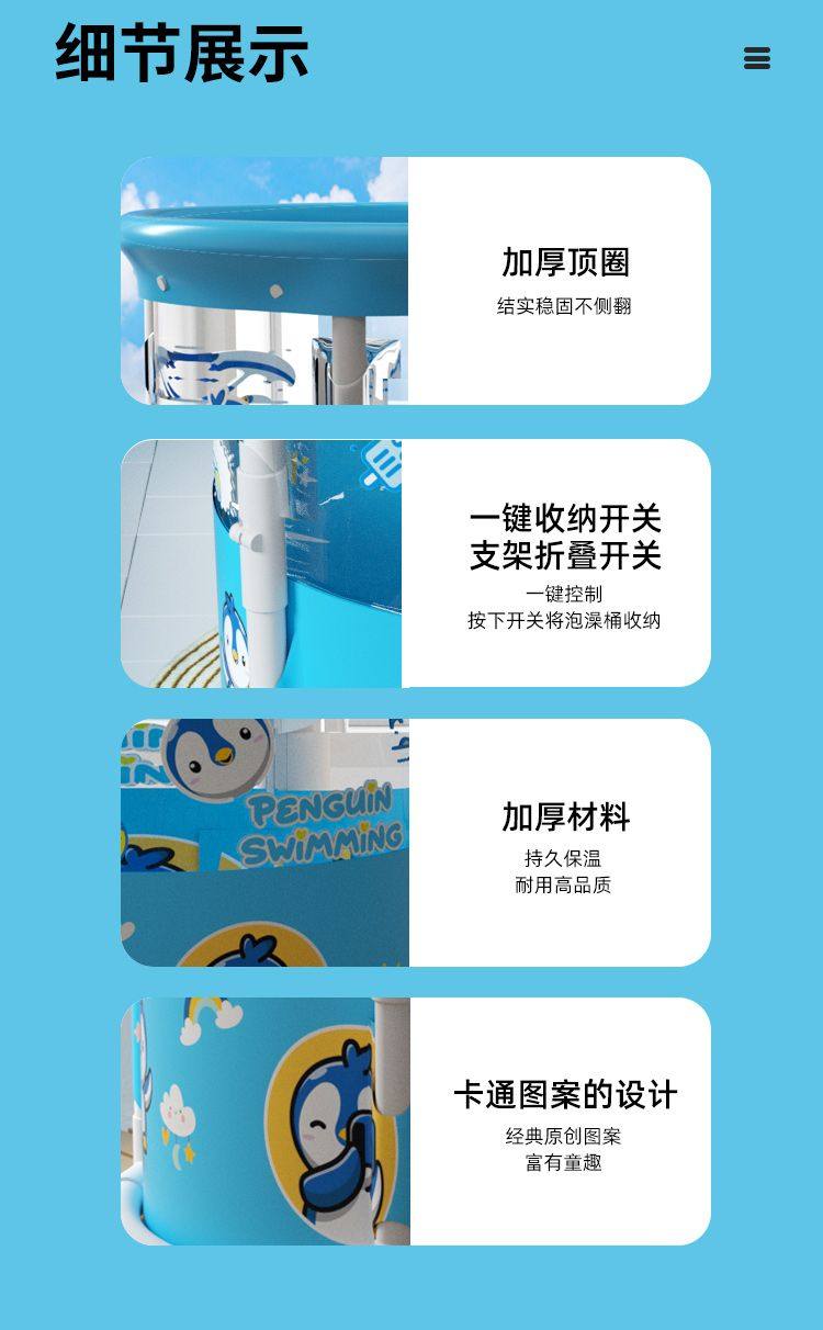 [70 x65] blue penguin (marine ball 10 + little duck 2 + swimming collar 1)