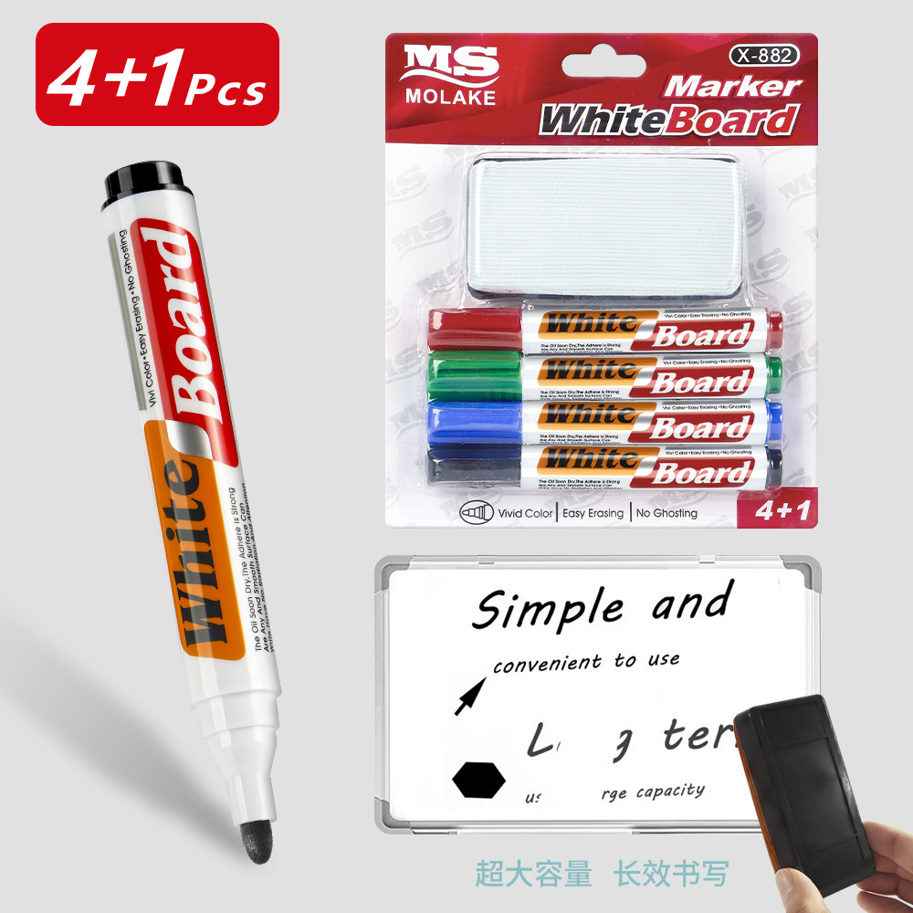 cross-border four-color card pack whiteboard pen set comes with eraser erasable stationery conference room teaching special blackboard pen