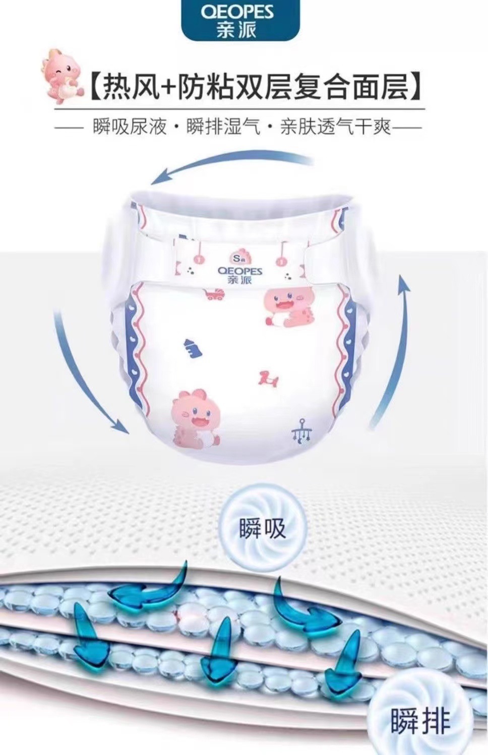 three packs of diapers l, 132 pieces in total