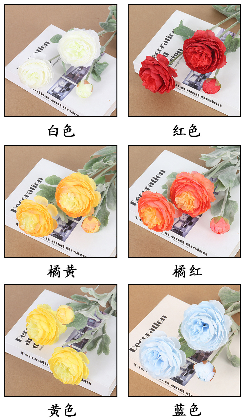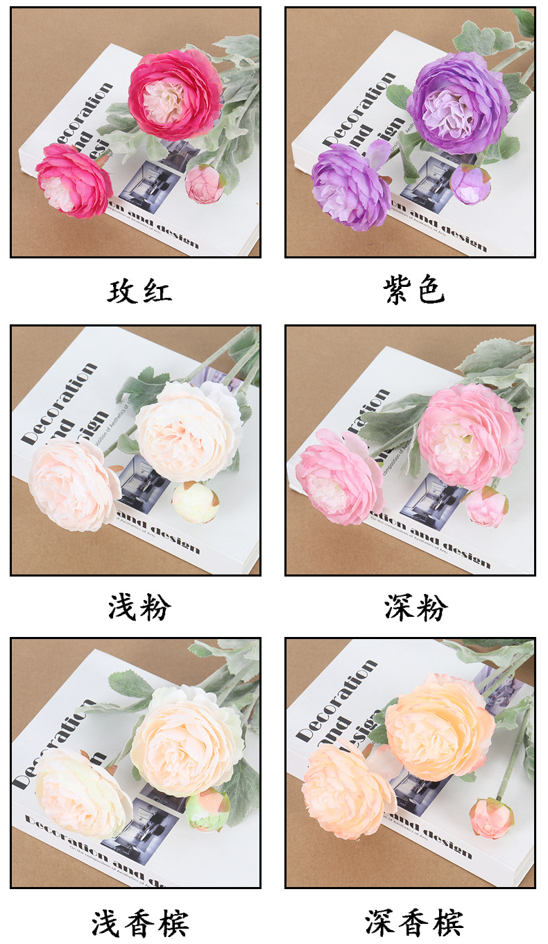 Specification: Two flowers and one bud, with a large flower diameter of about 8cm, a bud of about 3cm, and a total length of about 50cm, weighing about 45g.