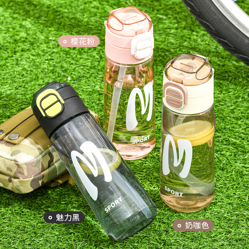 new large capacity water cup male student simple korean style tumbler double drinking water portable bounce cover sports plastic cup