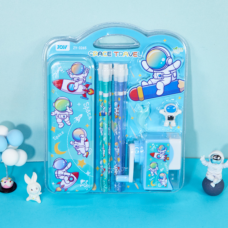 Foreign Trade Astronaut Cartoon Stationery Set for Boys with Sharpener Pen Box Gift Box Primary School Student Stationery Set