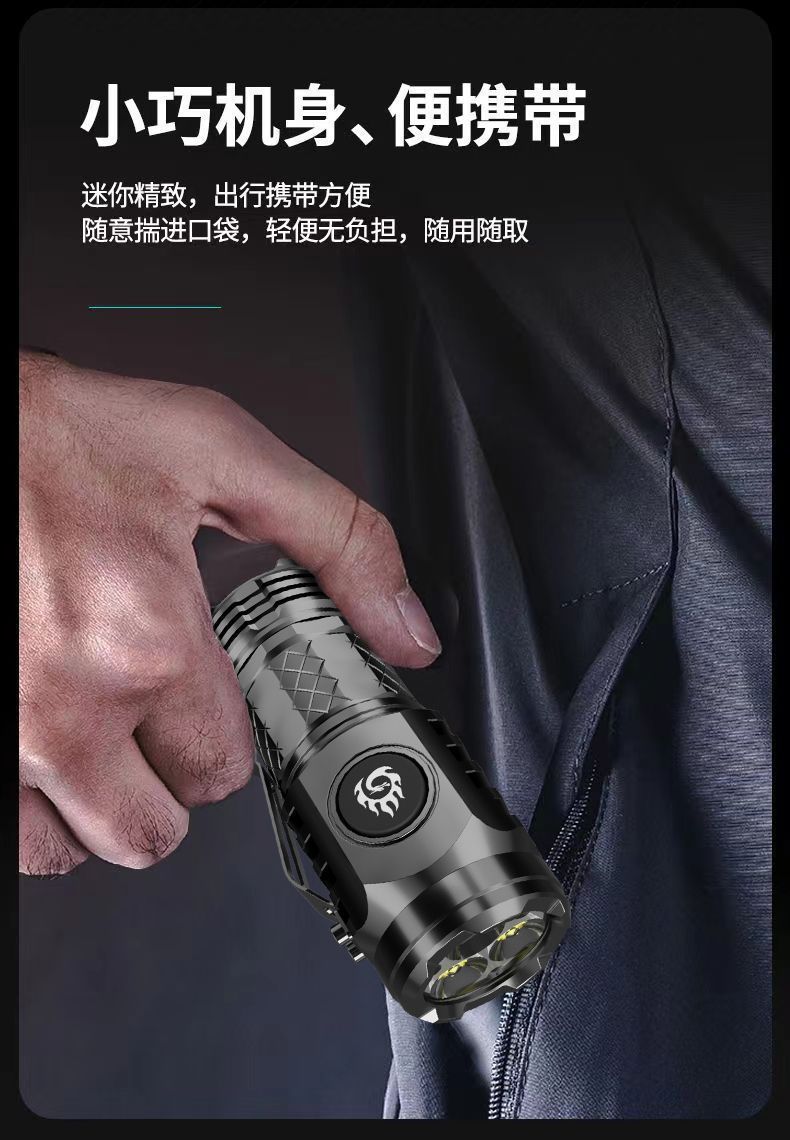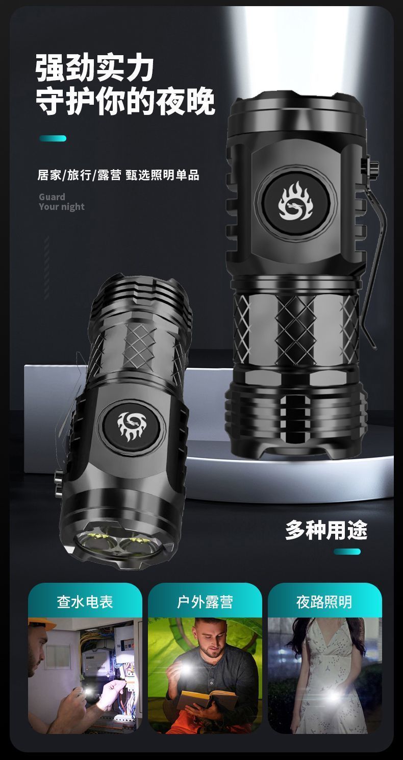 black plastic three-eye flashlight + usb cable (opp bag)