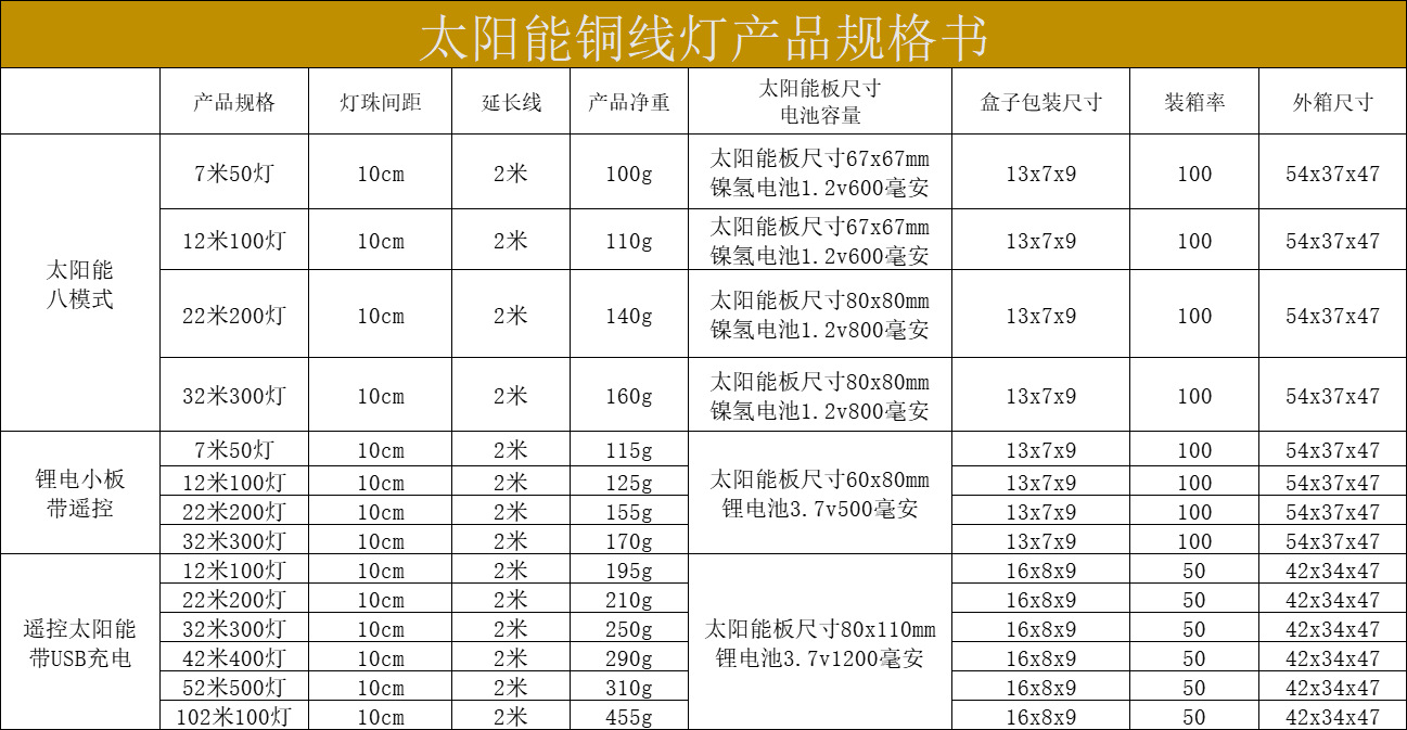 | 12 m 100 light highlight lithium battery remote control solar energy small board | CN¥ 17.91 | 788860 piece available |