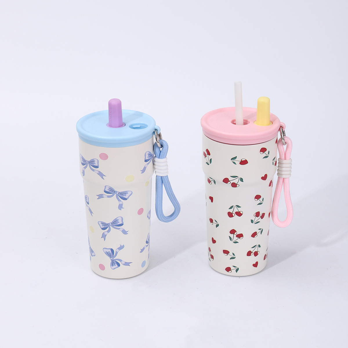 good-looking creative printing straw coffee cup 316 stainless steel vacuum cup large capacity portable vehicle-mounted large ice cup