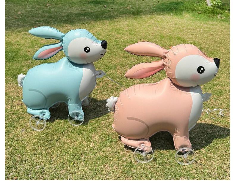 small [blue rabbit] three-dimensional walking with wheels