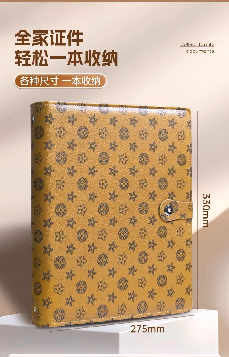 (upgrade password lock) yellow brown whole book (mixed pvc with zipper inner page with 12 pages)