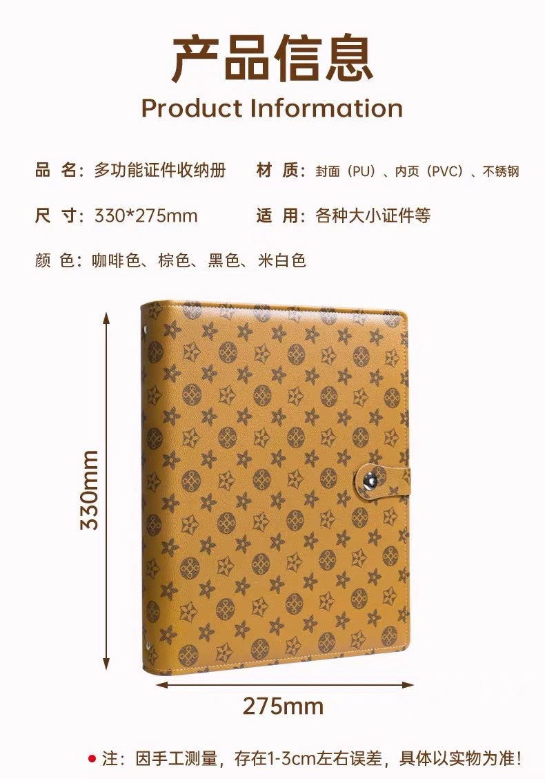 (upgraded password lock) coffee color whole book (mixed pvc with zipper inner page with 12 pages)