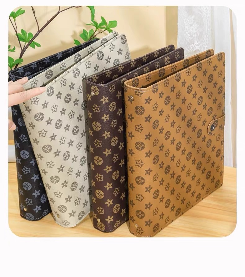 coffee color snap button (mixed pvc with zipper inner page with 12 pages)