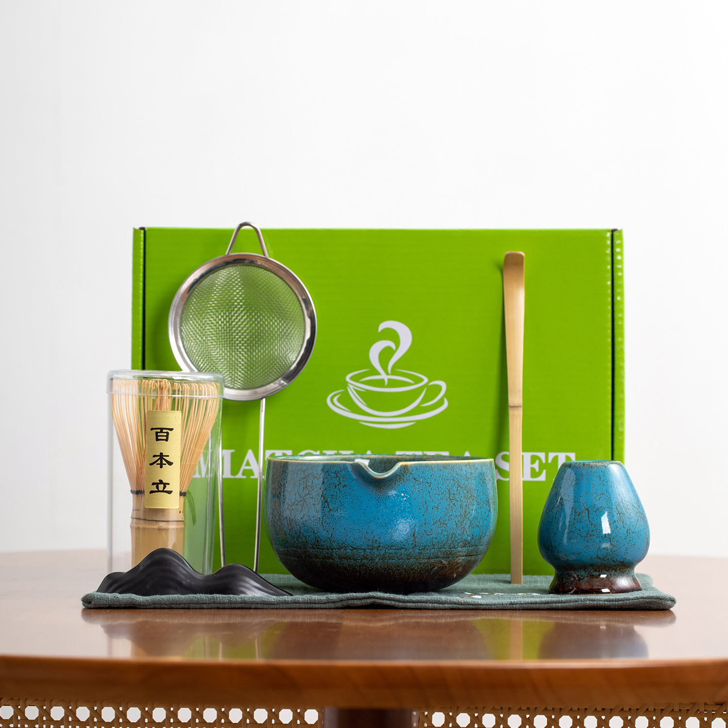 ct glaze kiln small mouth bowl with cup 7-piece set blue (pure green color box)
