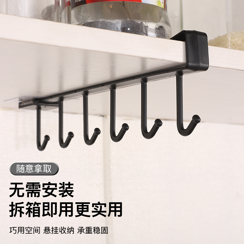 six hooks hanging closet hook dormitory kitchen rental house hook rack punch-free wall cupboard lower holder