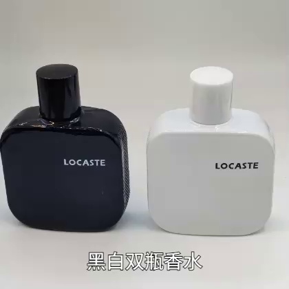 Black and white minimalistic perfume bottle with a high-end, quality feel and a niche fragrance. Exported wholesale, luxury and elegant style. Key selling points: eco-friendly glass bottle, long-lasting fragrance. Solves user pain points: avoids the feeling of cheapness, enhances personal taste. The brand is ISO certified to ensure quality. Emotional resonance: a simple life, highlighting unique charm.