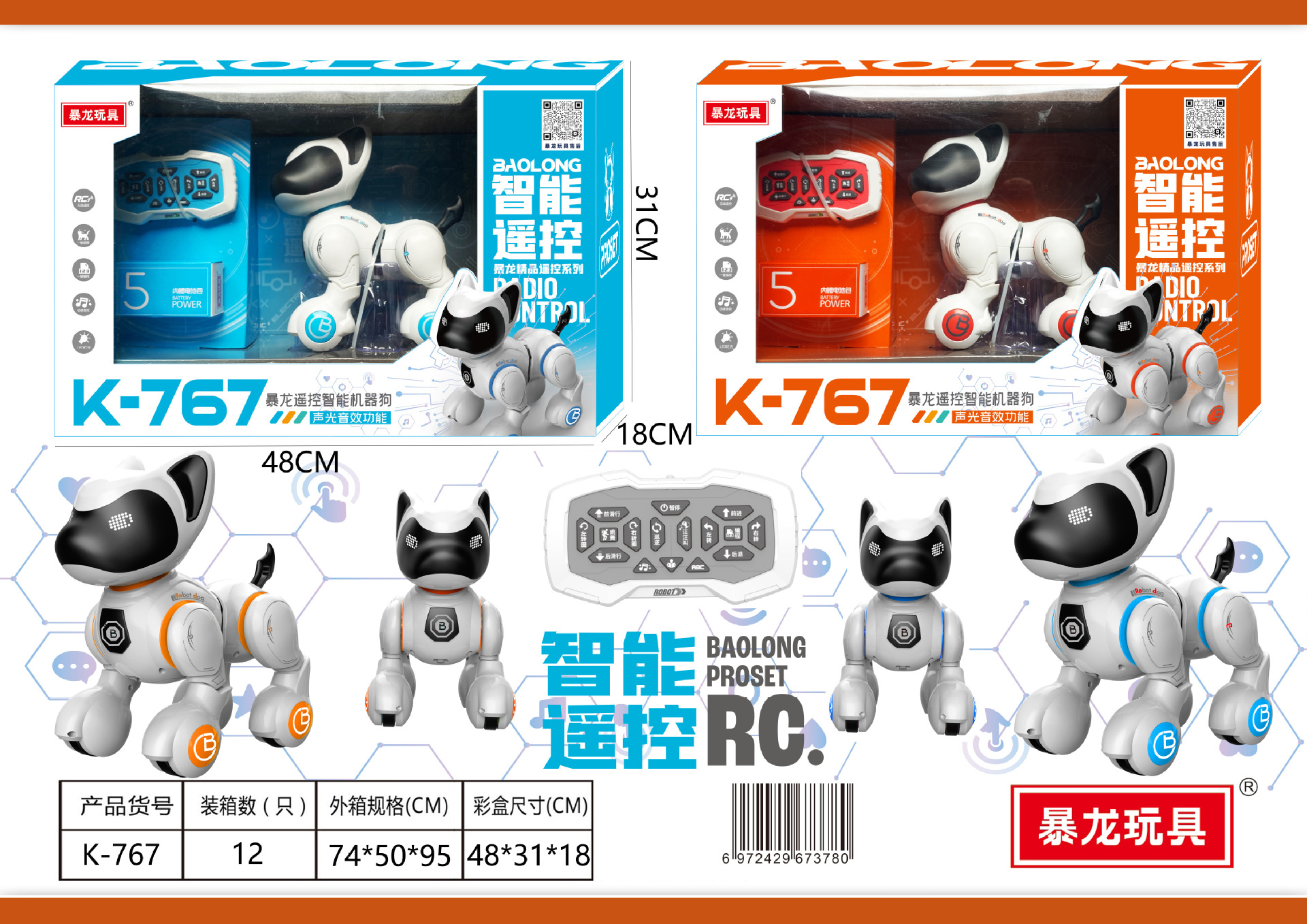 k-767 intelligent remote control robot dog (random color)