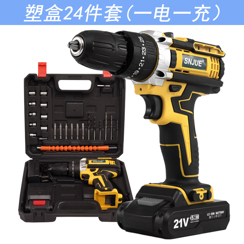 21v electric drill plastic box 24-piece set ed03-24-2 (two electricity and one charge)