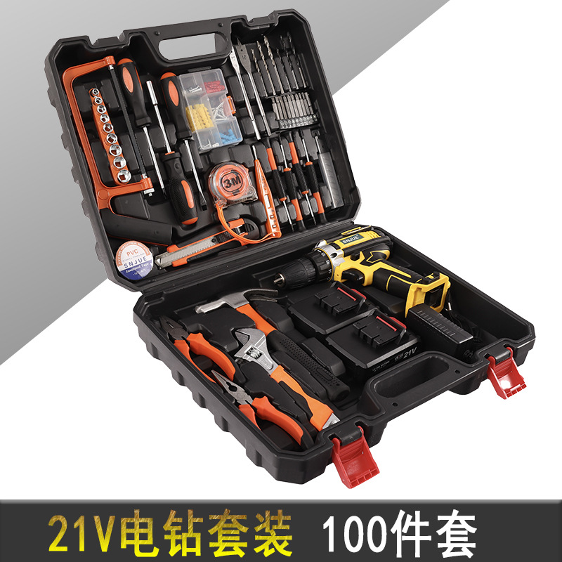 21v electric drill plastic box 100-piece set ed03-100-1 (one electricity and one charge)