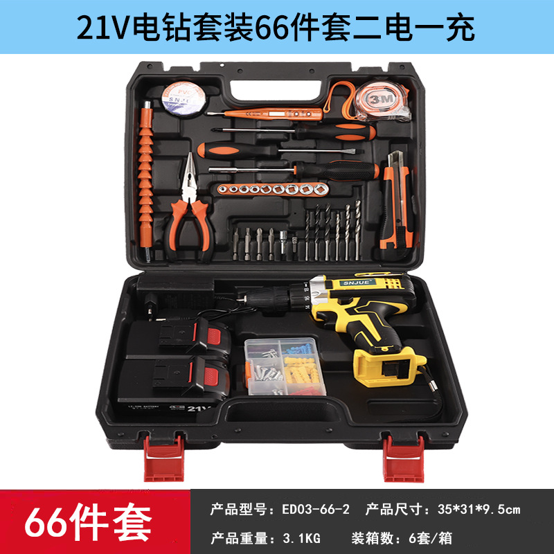 21v electric drill plastic box 66-piece set ed03-66-2 (two electricity and one charge)