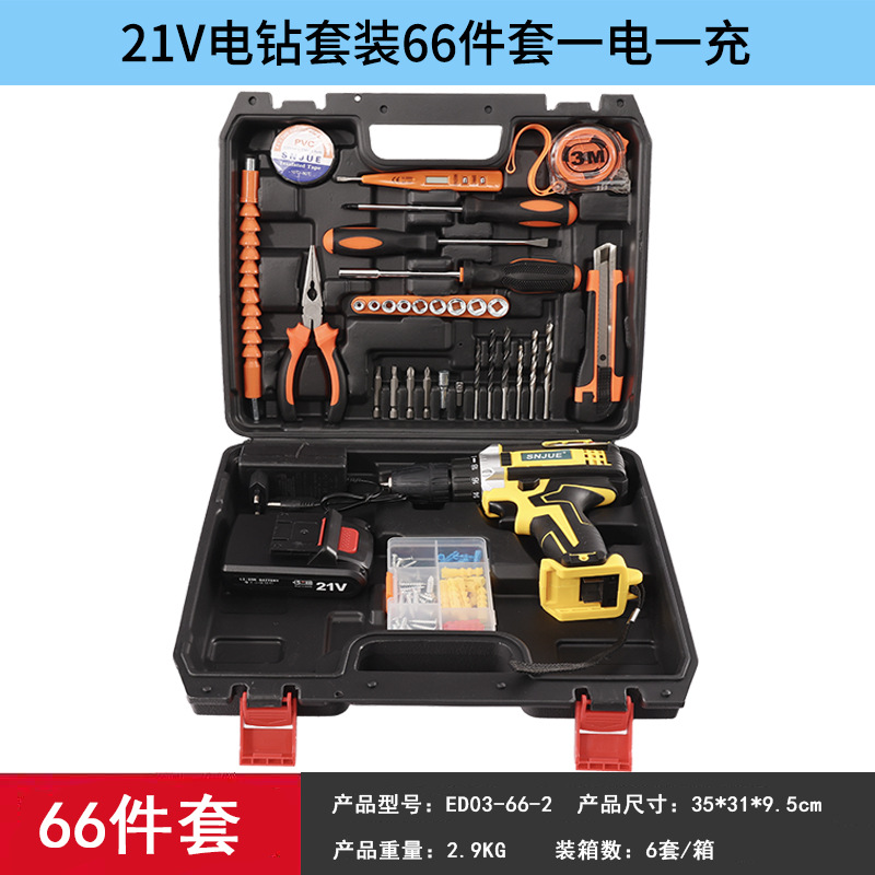21v electric drill plastic box 66-piece set ed03-66-1 (one electricity and one charge)