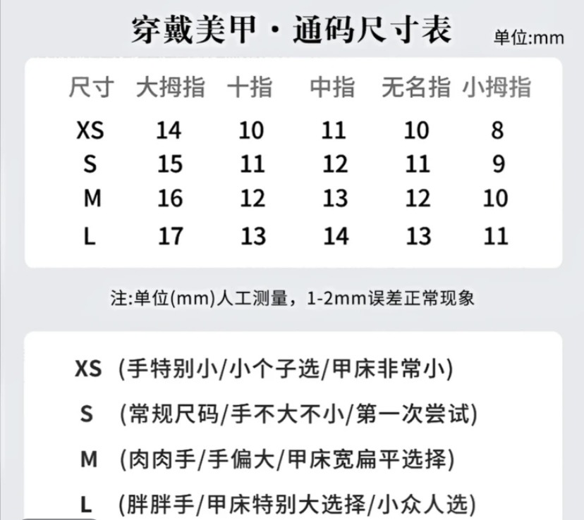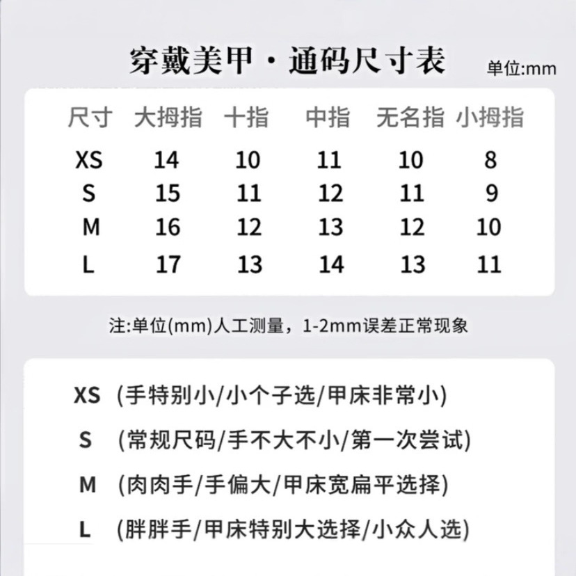 | size m (meat hand/hand is too large/nail art bed is too flat) | CN¥ 0.0 | 9989 set available |