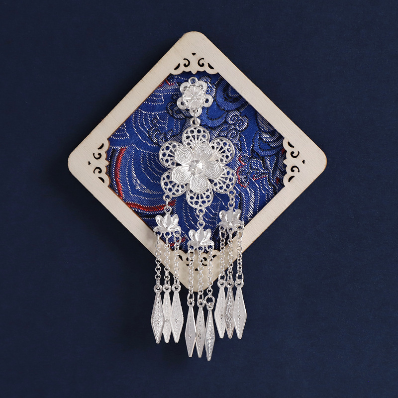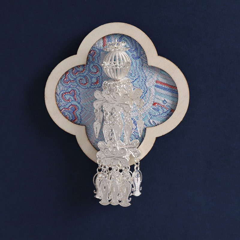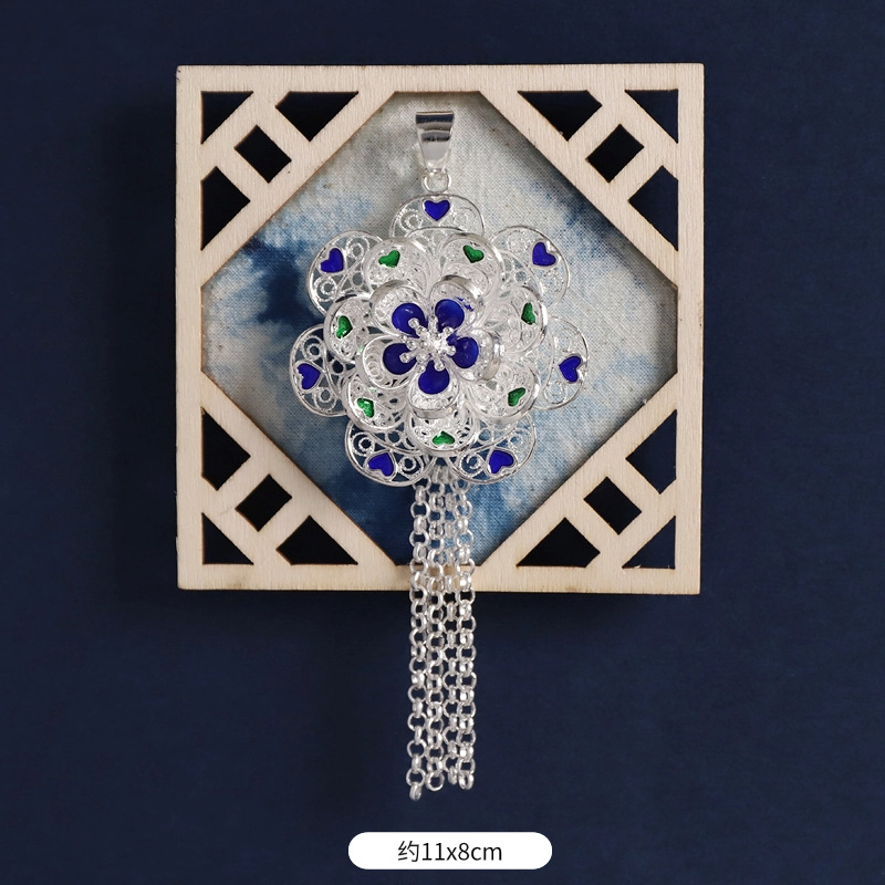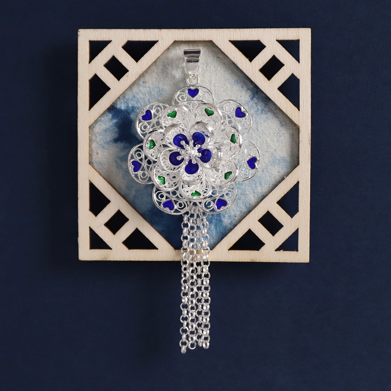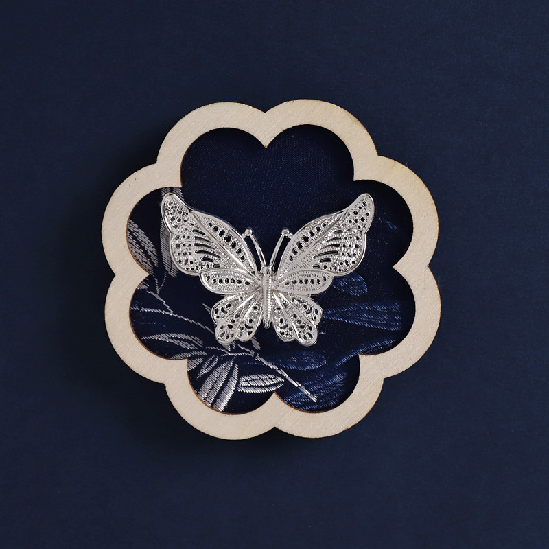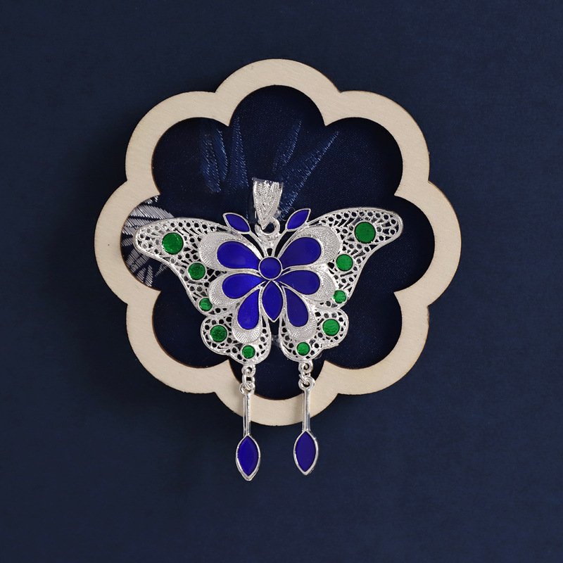 46-flower frame bamboo ink blue (enamel silver butterfly)