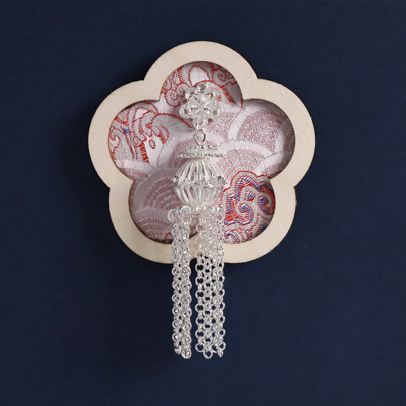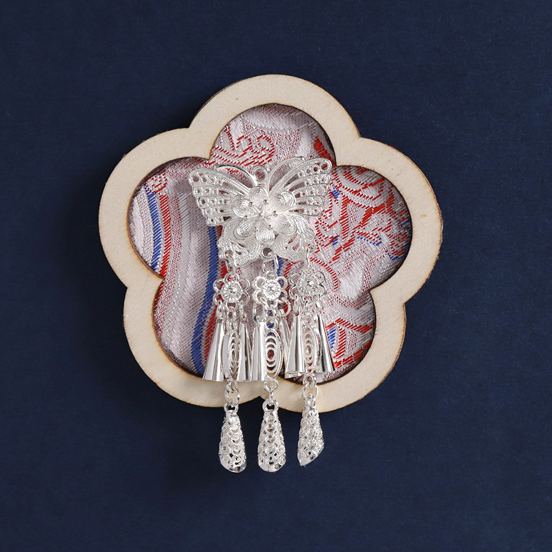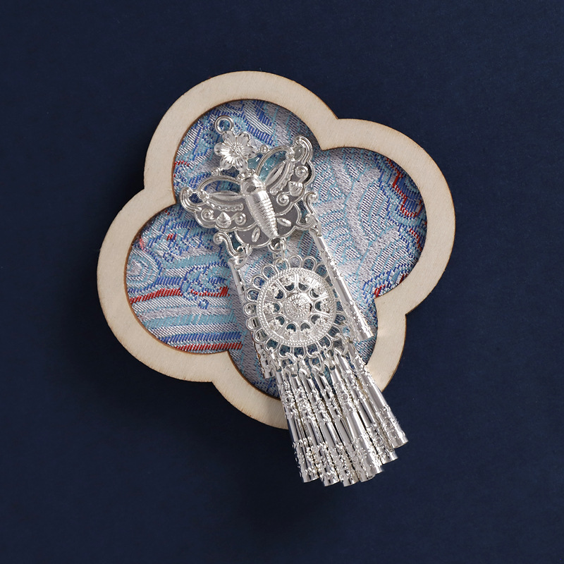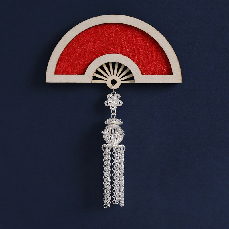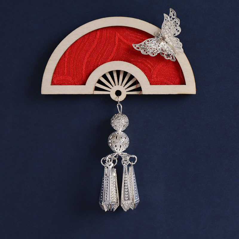 3-fan-shaped chinese red (silver butterfly tassel)