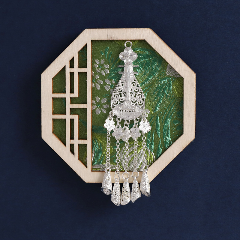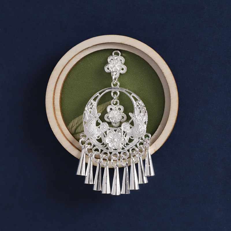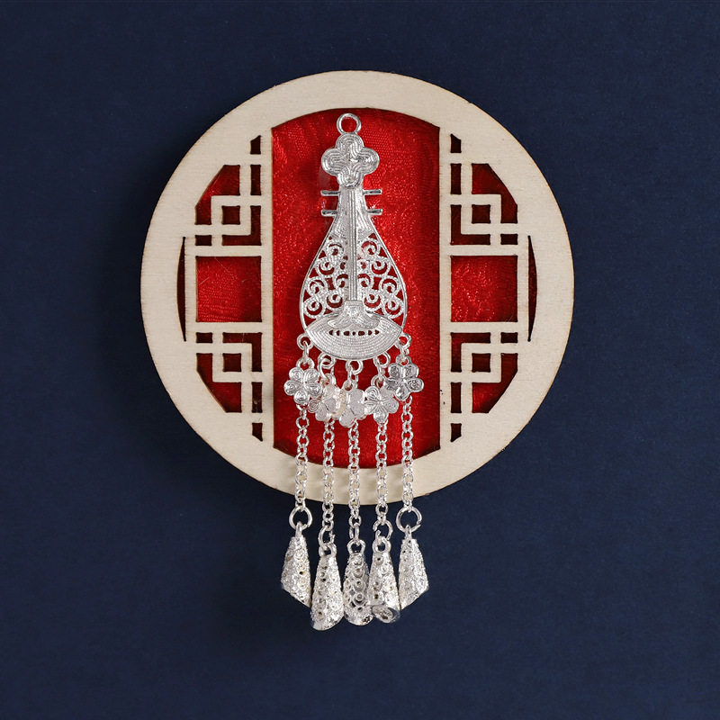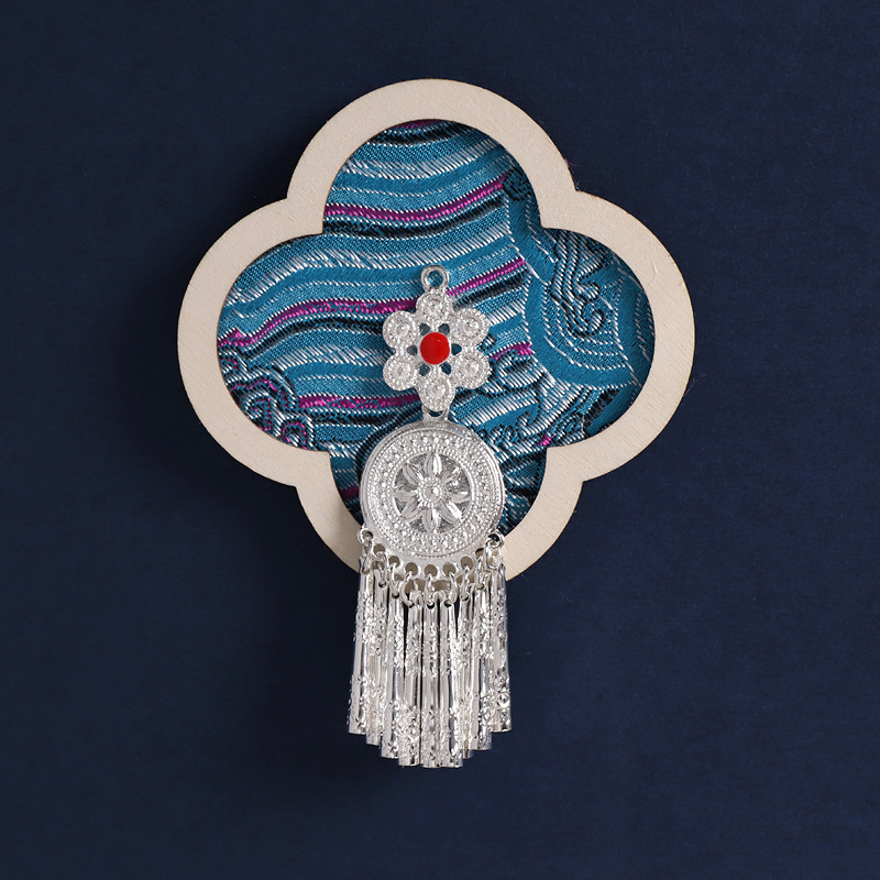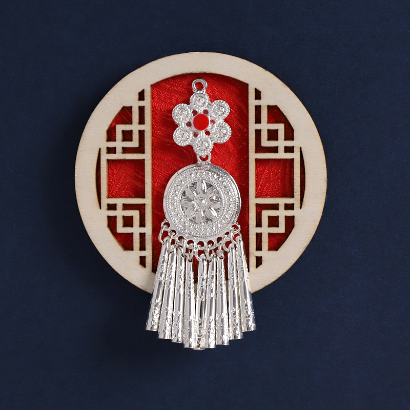 3-fan-shaped chinese red (silver butterfly tassel)