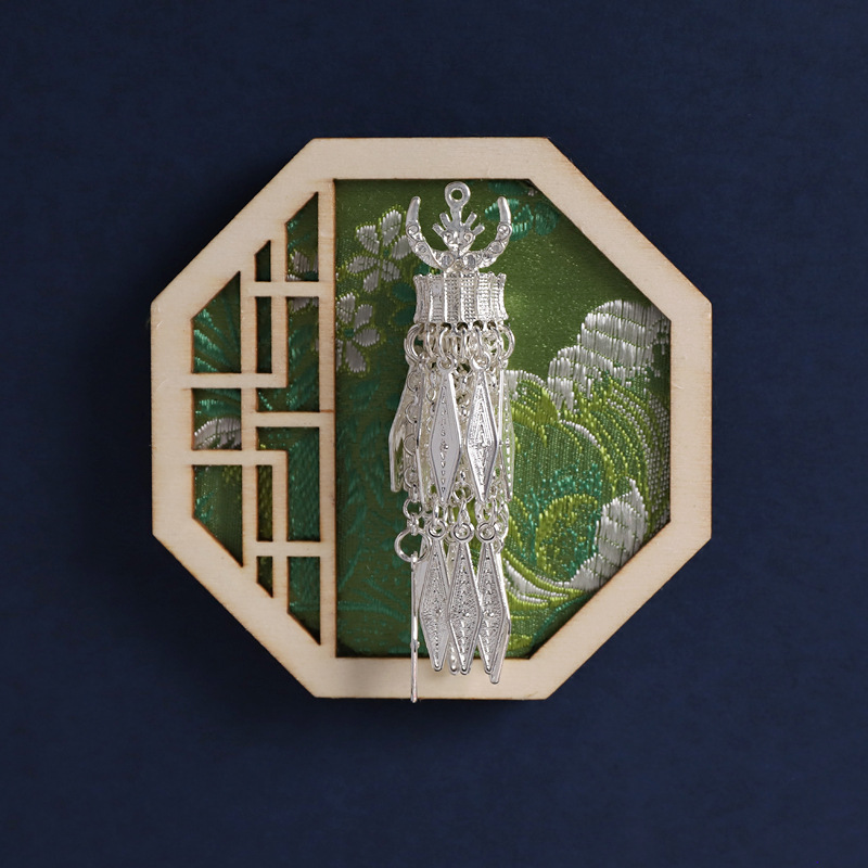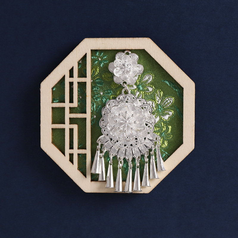 15-octagonal flower window green (hmong village tassel)