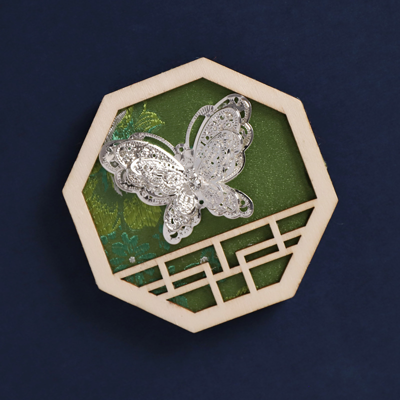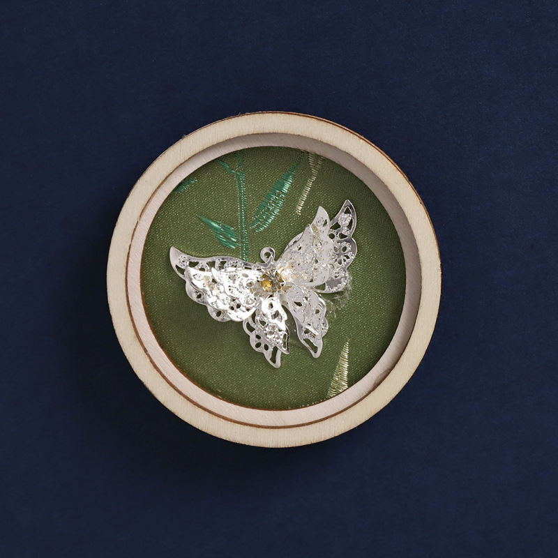 37-round bamboo green (silver dancing butterfly)