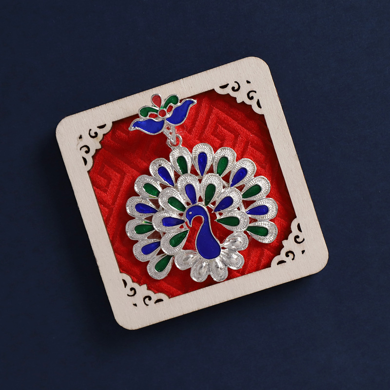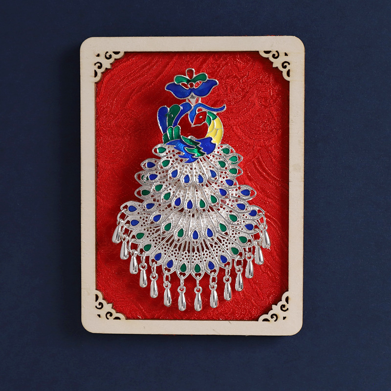 32-long frame chinese red (enamel peacock)
