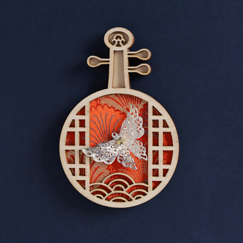 39-round flower window red (silver dancing butterfly)
