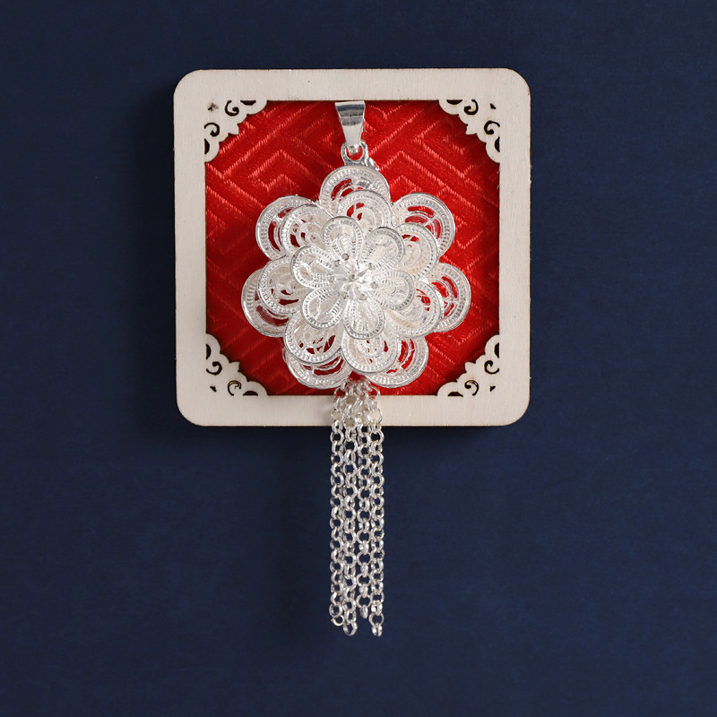 16-square back red (silver multi-layer flower)