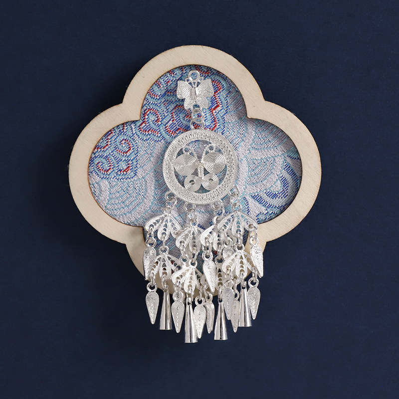 14-four leaves wave blue (flower circle tassel)