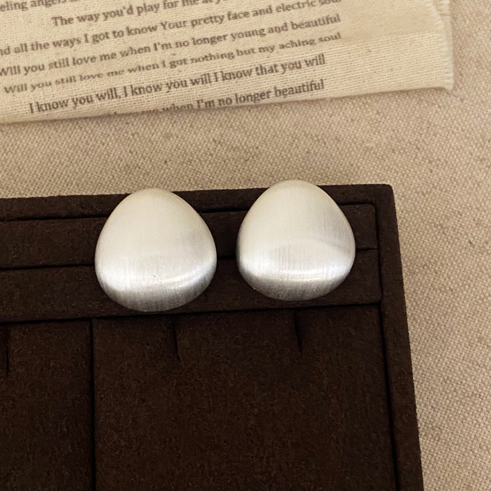 a- 314-silver brushed small bean stud earrings 925 silver needle plated real silver