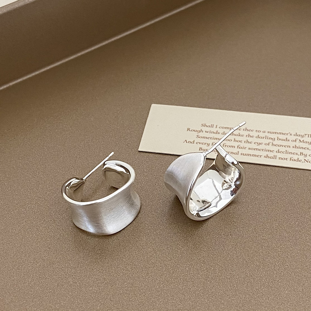 a- 783 brushed-silver c- ring wide twist earrings 925 silver needle plated real gold