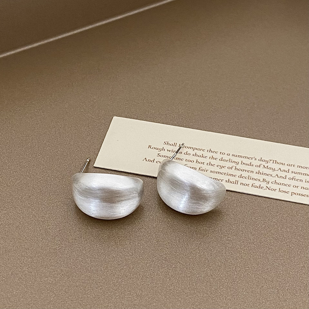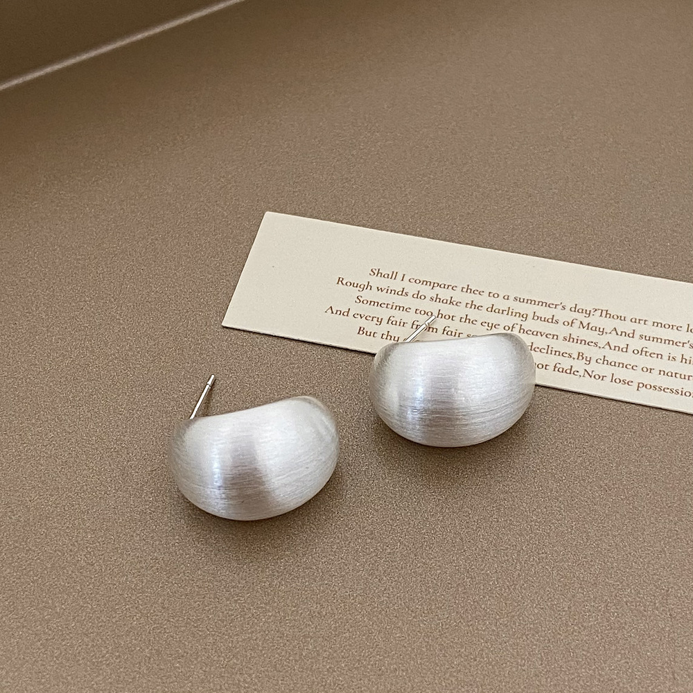 a- 391-silver brushed small beans arc stud earrings 925 silver needle plated real silver