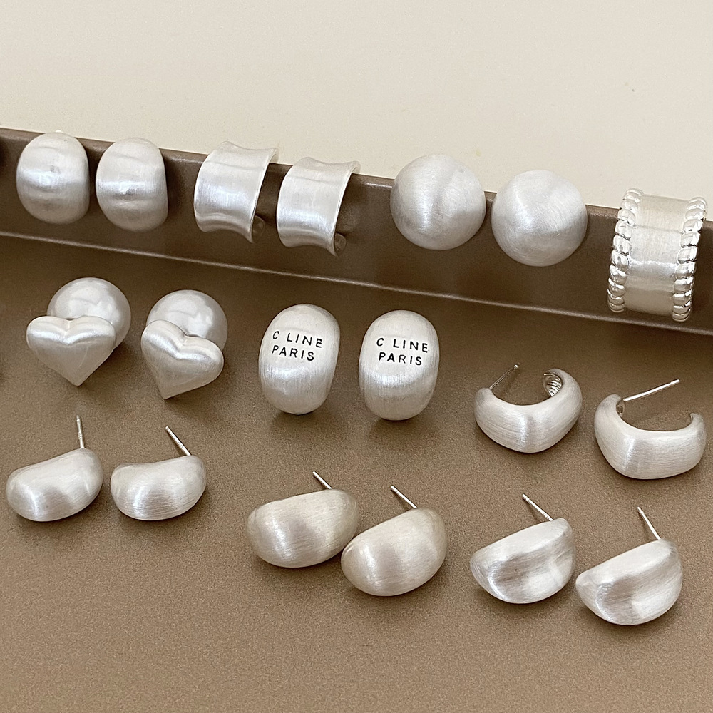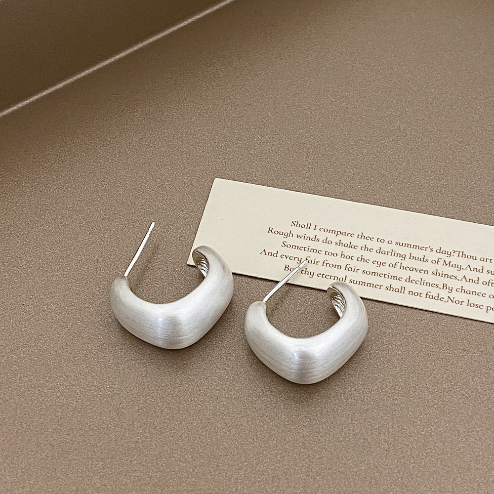 a- 308 brushed silver brushed earrings-925 silver needle-copper plated gold