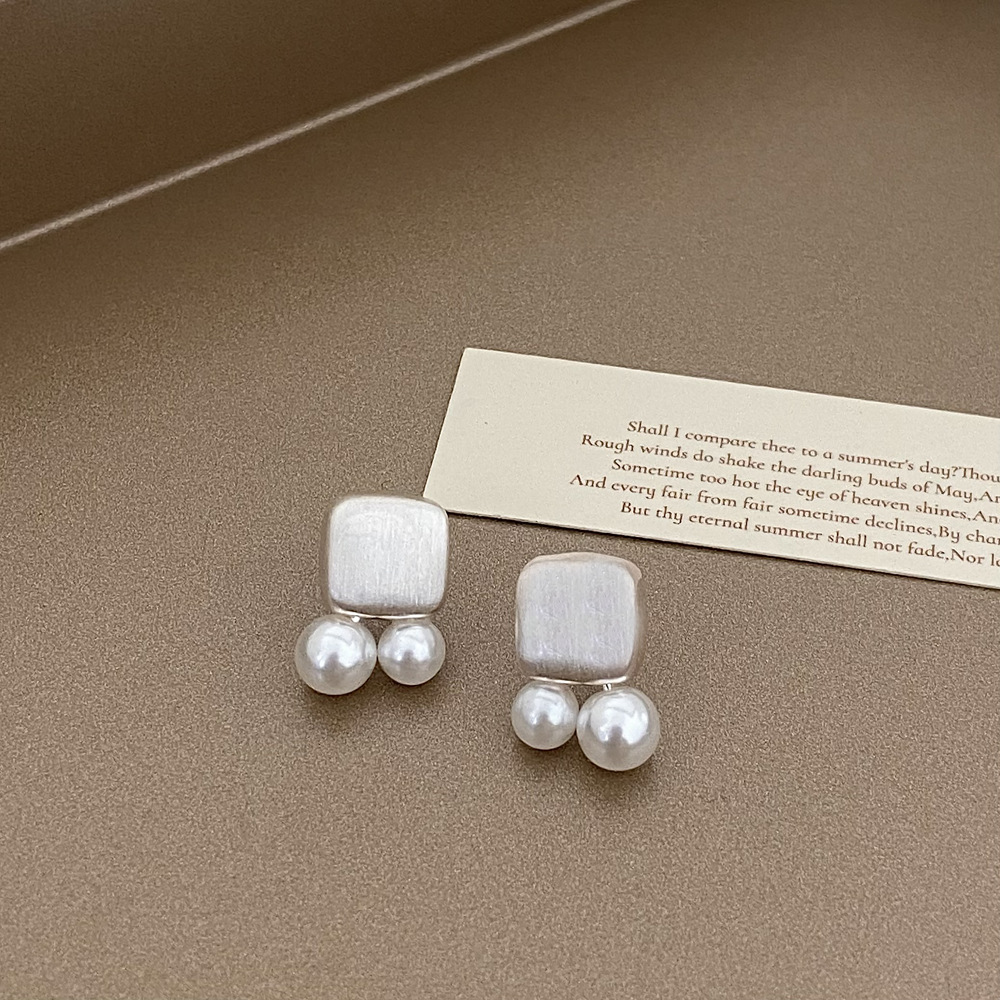 a- 361-silver square pearl earrings-925 silver needle