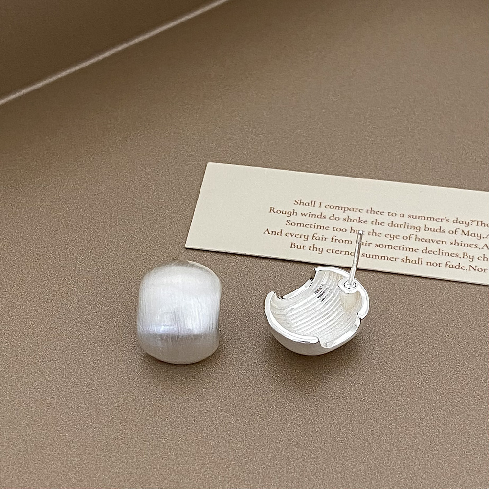 a- 441 brushed-silver heart shell pearl earrings-copper plated gold-925 silver needle
